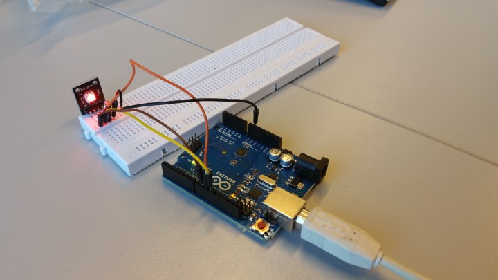 Nonetheless the device works. It checks the temperature in Helsinki and changes its color depending on the results. We tested it with other cities too and it worked well.